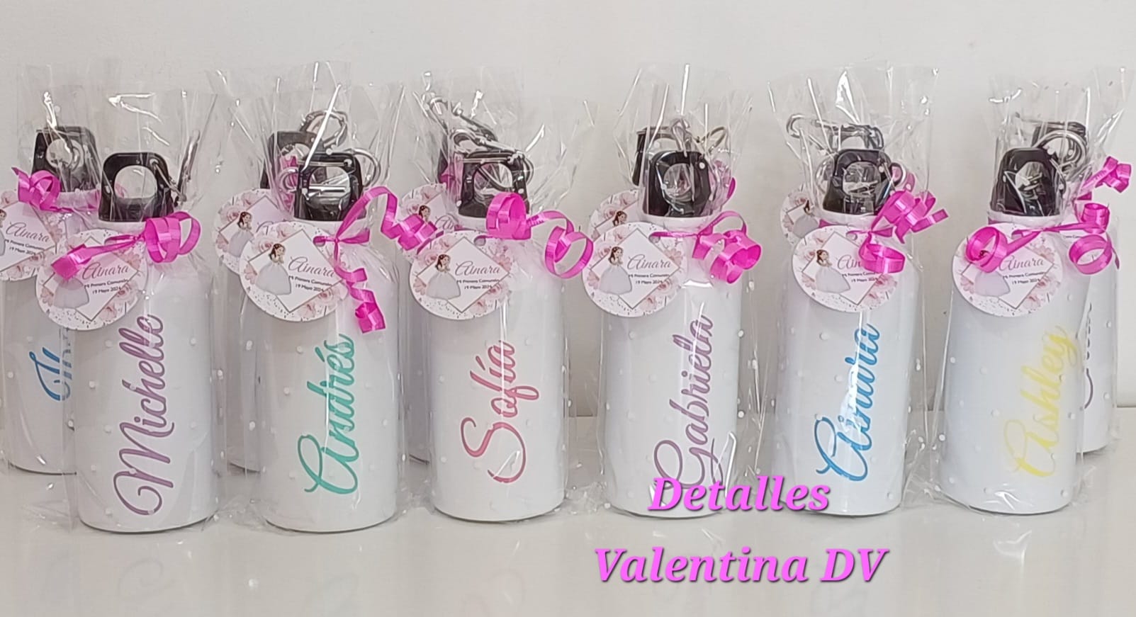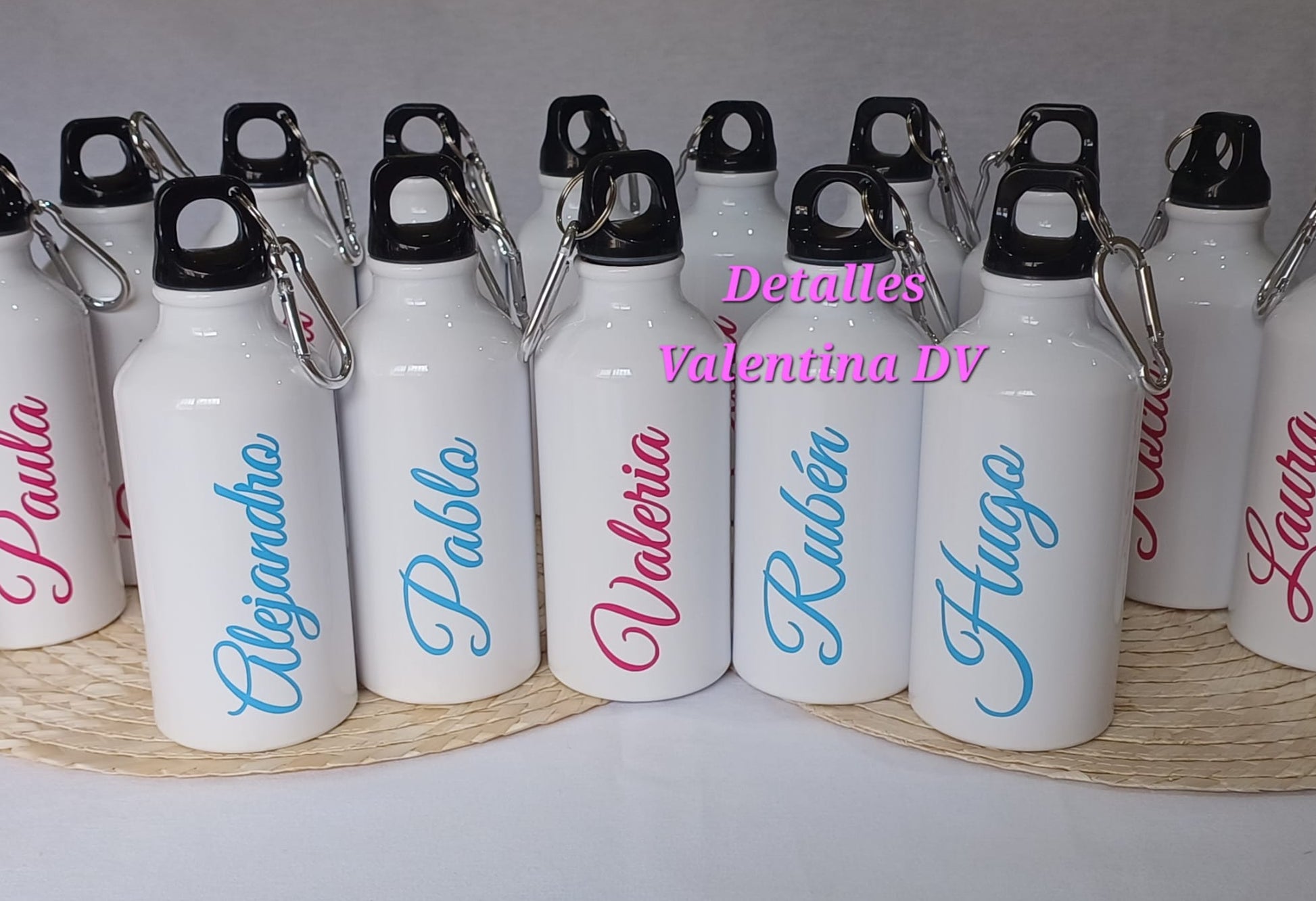 Bidón de agua personalizado con nombre en vinilo de color.