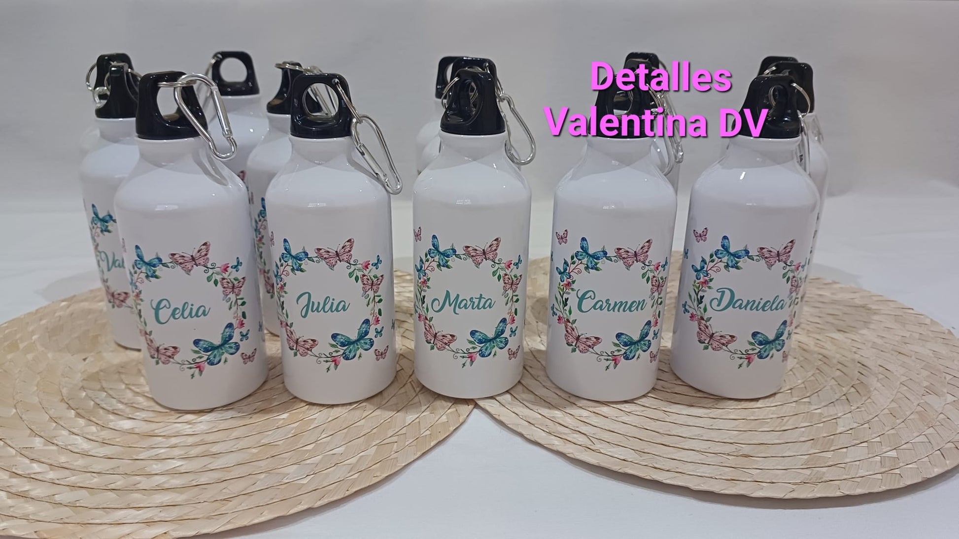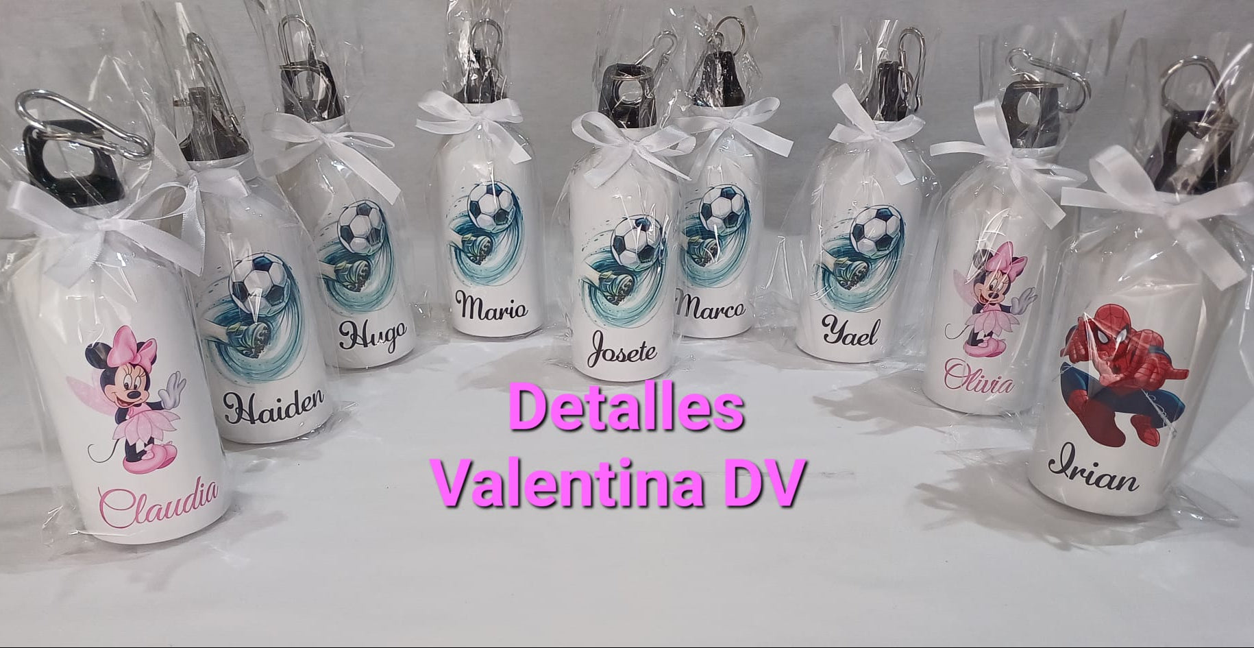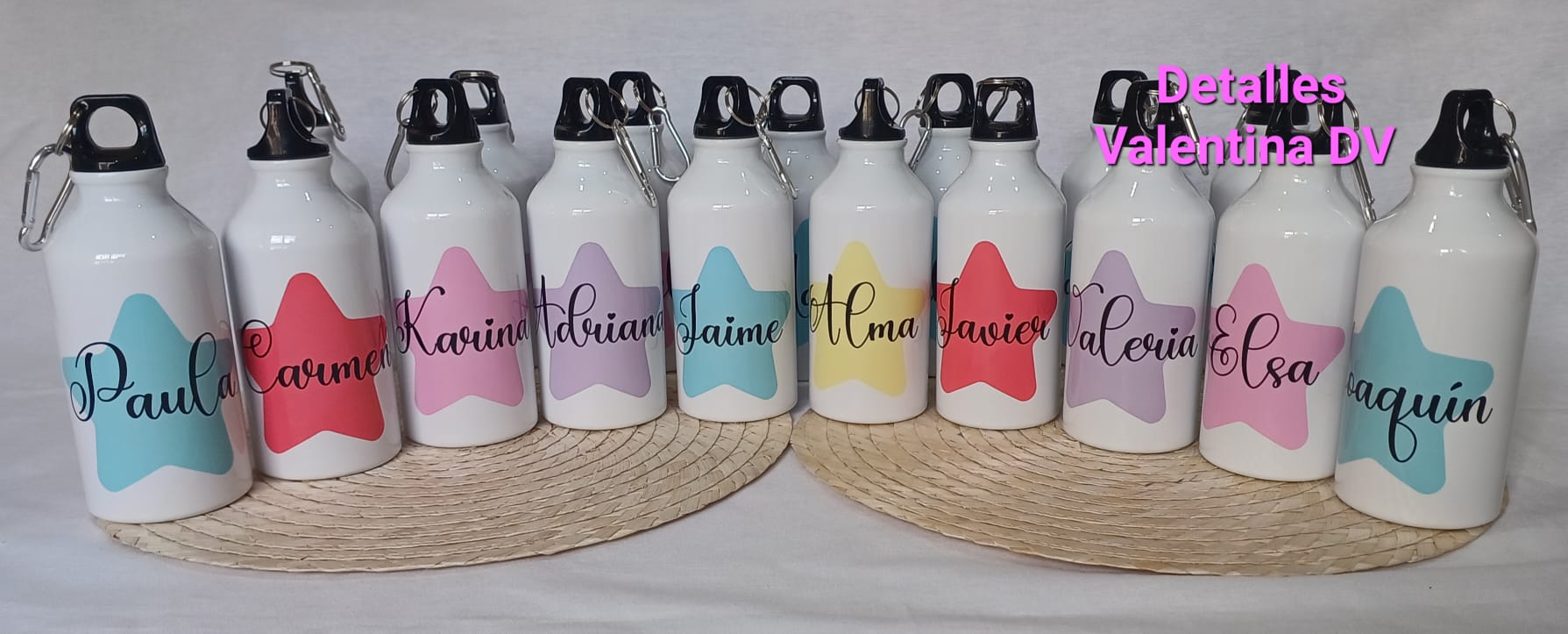 Bidón de agua personalizado con dibujo o imagen y el nombre de los invitados mediante sublimación.