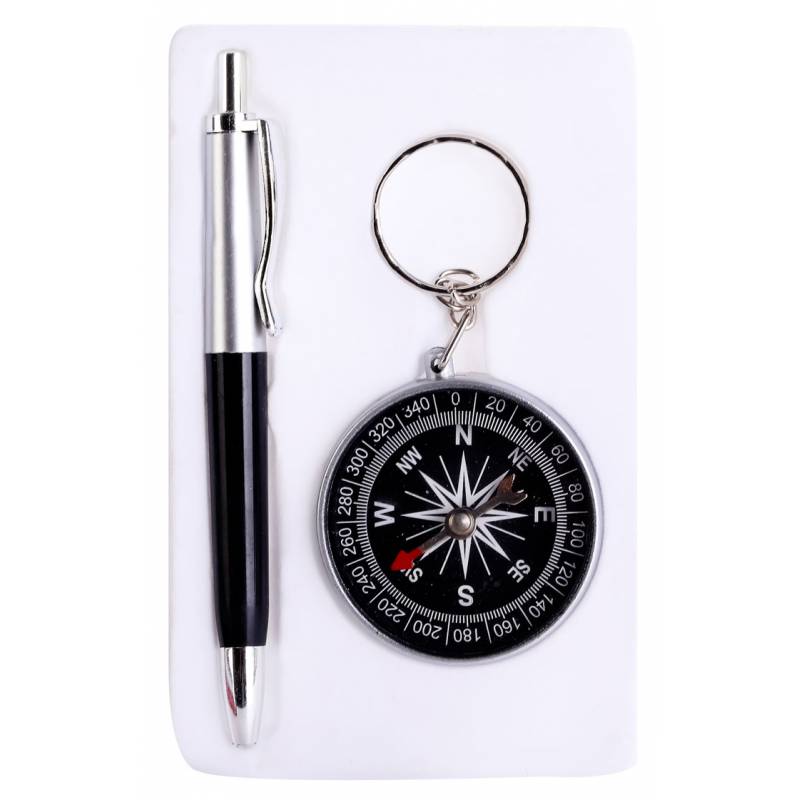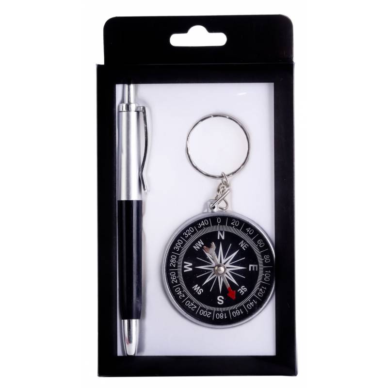 Set de bolígrafo + brújula llavero. El regalo ideal para no perderte nunca. Presentado en caja de PVC con ventana transparente.