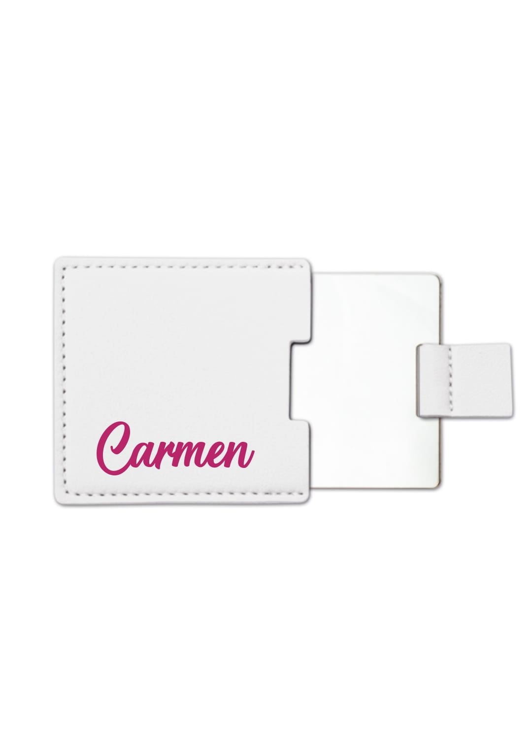 Espejo compacto cuadrado en polipiel. Lleva tu belleza contigo a todas partes con este elegante espejo compacto. Protegido en una sofisticada funda de polipiel, combina funcionalidad y estilo en un accesorio imprescindible. Perfecto para retoques rápidos durante el día, su tamaño práctico cabe en cualquier bolso. La funda de polipiel garantiza durabilidad y resistencia, manteniendo tu espejo seguro y en perfecto estado. Un detalle de calidad que no puede faltar en tu neceser.