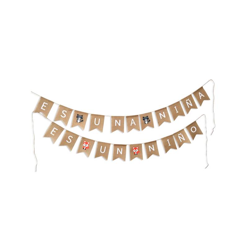Compuesto por 10 banderines con la frase "Es un niño/a".