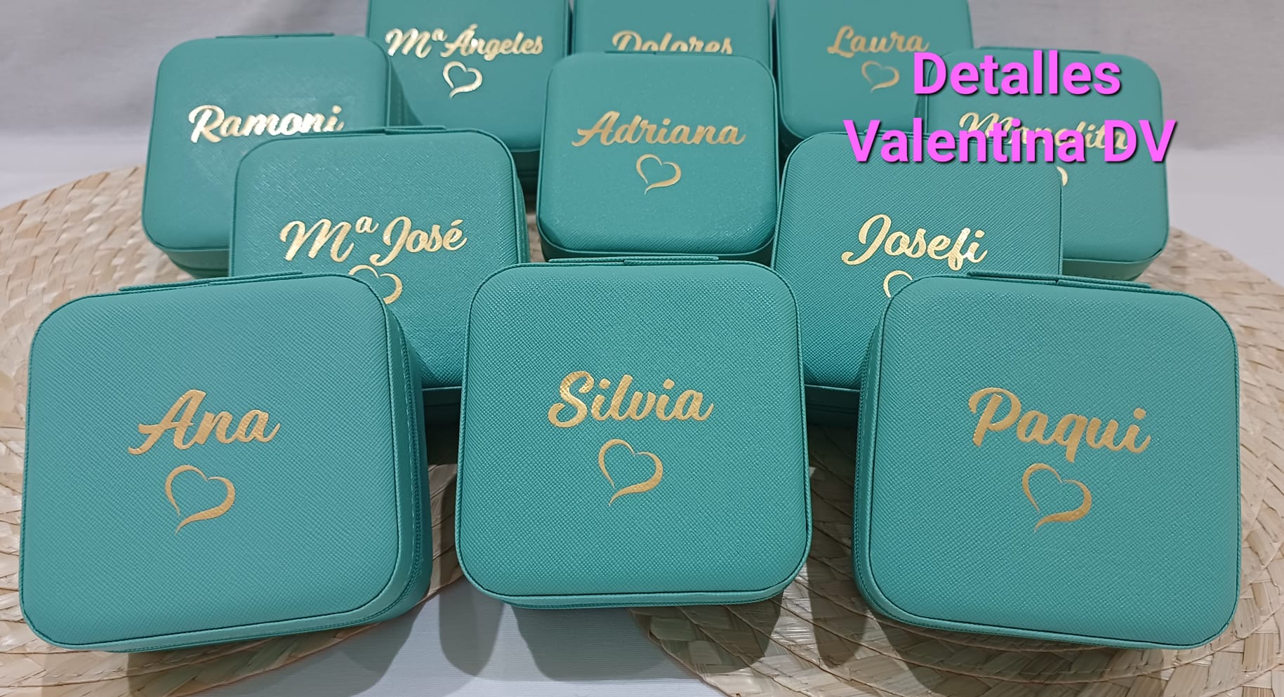 Joyero de viaje personalizado con los nombres de las invitadas a tu evento donde podrán guardar sus joyas durante sus viajes.