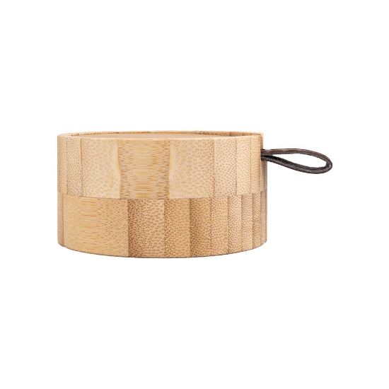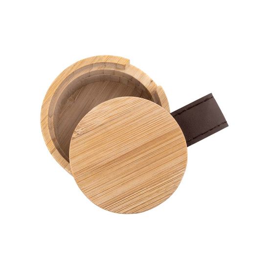 Joyero personalizado elaborado con madera de bambú, con espejo interior y asa decorativa para abrir con facilidad.