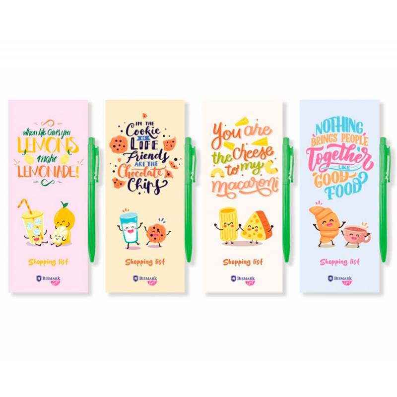 Bonita libreta imantada para poner en el frigorífico. Contiene 100 hojas de rayas con dibujo. Presentado en bolsa de celofán de protección. Surtido en 6 diseños. Precio unitario.