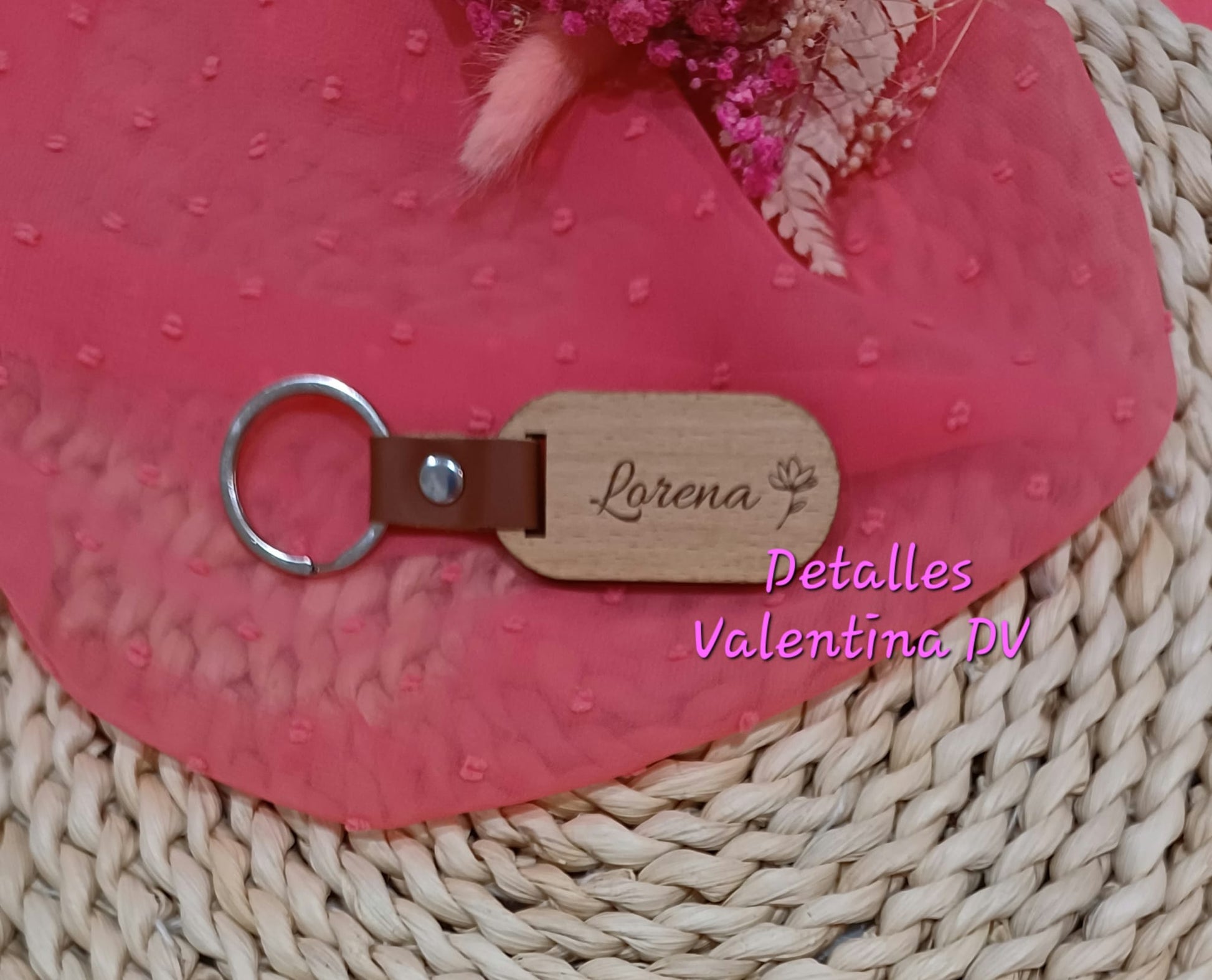 Llavero ovalado de madera grabado