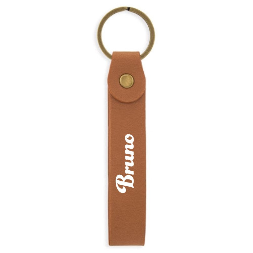 Llavero rectangular personalizado elaborado con polipiel en diferentes colores. Con remache y anilla dorados.