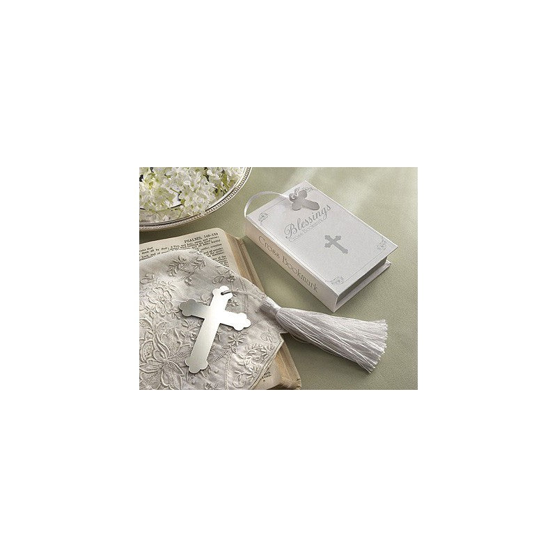 Los bautizos y comuniones son momentos memorables y significativos en nuestras vidas, que compartimos con aquellos que ocupan un lugar importante en nuestros corazones. Marca este momento y recuérdales tu amor y agradecimiento dándoles la "Bendiciones" Cruz de Plata marcador, oportunamente presentado en una caja libro de recuerdo. Este diseño cuenta con una borla de largo, blanco puro y una cruz, donde las tapas de trébol de tres hojas finales representan la Trinidad, así como fe, esperanza y amor. La caja de regalo, es una réplica en miniatura de la Biblia, tiene acentos decorativos en plateado.