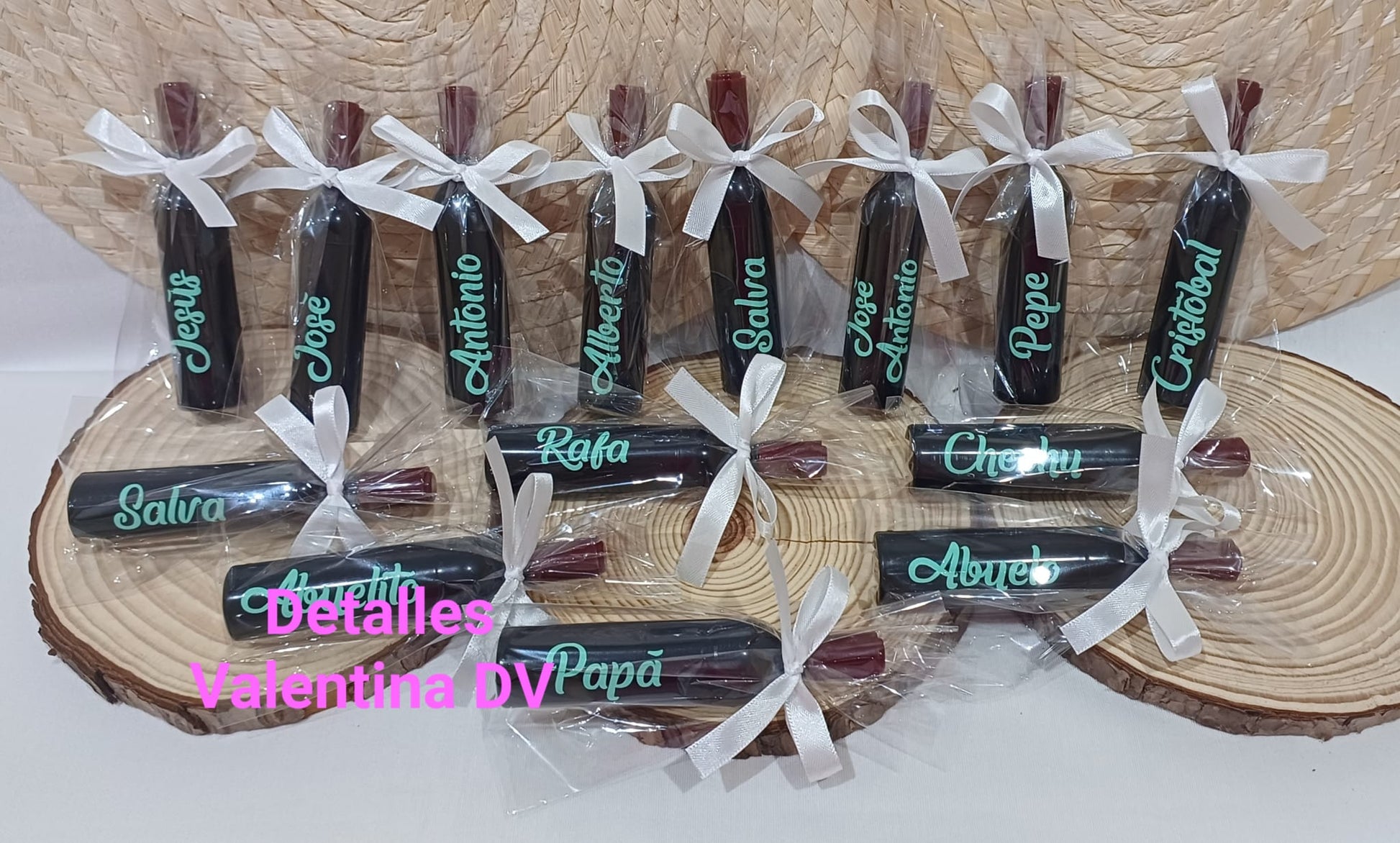 Divertido sacacorchos magnético con forma de botella de vino en color negro. Personalizado con el nombre de invitados.